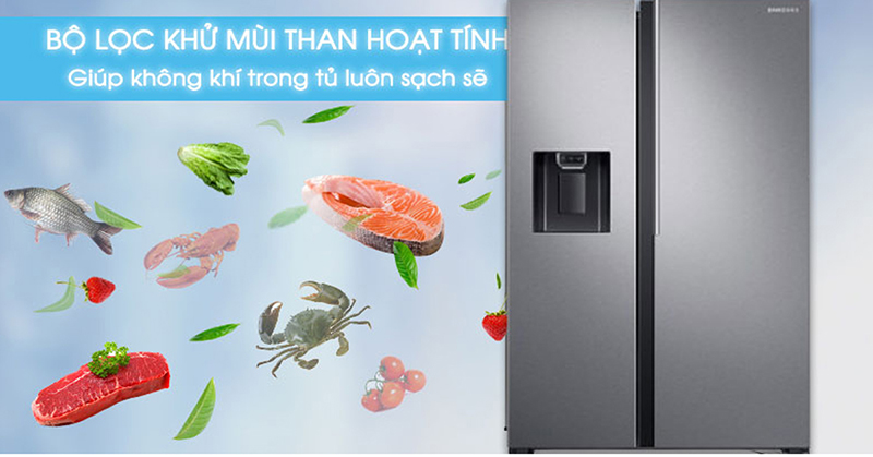 Bộ lọc than hoạt tính trên tủ lạnh Samsung có tác dụng khử đi các mùi có thể phát sinh trong tủ lạnh do các vi khuẩn có trên thực phẩm gây ra. Bộ khử mùi than hoạt tính có khả năng khử đến 99,999% nấm mốc và các vi khuẩn gây hại có thể có trong tủ lạnh. Bên cạnh đó, công nghệ này còn hạn chế và giảm thiểu các mùi từ nấm mốc, bụi bẩn, mùi tanh của thịt cá, các mùi thối rửa của thực phẩm một các triệt để, đảm bảo độ tươi ngon và chất lượng tốt nhất cho thực phẩm được bảo quản ở cả ngăn đông và ngăn trữ thực phẩm.