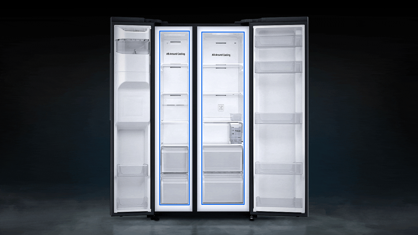 Điển hình như công nghệ SpaceMax của tủ lạnh SBS Samsung giúp mở rộng không gian lưu trữ, cho bạn thoải mái lưu trữ mọi loại thực phẩm yêu thích, đảm bảo độ tươi ngon dài lâu cho bữa ăn gia đình thêm ngon tròn vị.