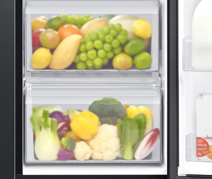 Khi sở hữu một dung tích khổng lồ, tủ lạnh Side By Side cũng cần có những công nghệ làm lạnh riêng biệt để bảo quản được khối lượng thực phẩm to lớn có trong tủ một cách tốt nhất. Với rau củ, trái cây tươi, tủ lạnh Side By Side thiết kế ngăn rau củ riêng biệt có giả lập ánh sáng mặt trời và hút chân không, giữ cho rau có môi trường tốt nhất để tươi lâu, không bị mất nước.