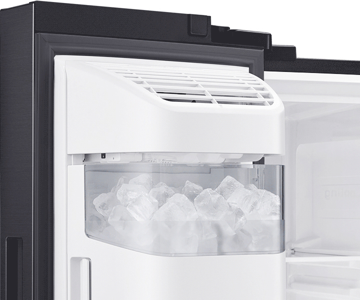 Tủ lạnh Side By Side thường thiết kế 1 ngăn làm đá tự động, có tính năng tự bơm nước từ ngăn chứa nước lên khay đá, làm đá sau đó tự động nghiêng để đổ đá viên xuống khay đá viên. Sau đó, nó sẽ lại thực hiện từ đầu chu trình cũ là bơm nước, làm đá… Chỉ cần đổ đầy nước vào ngăn chứa nước, sau một đêm bạn sẽ có rất nhiều đá viên sạch để sử dụng.