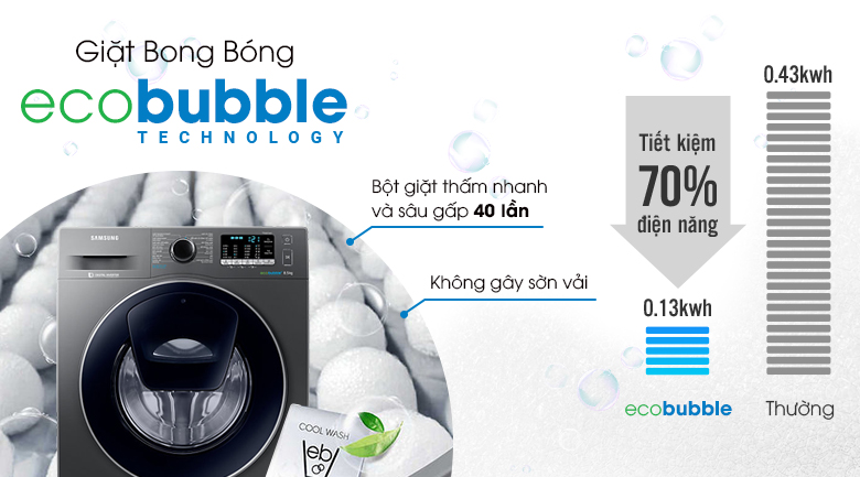 3. Chế độ giặt bong bóng Eco Bubble - tạo bọt siêu mịn, thấm sâu