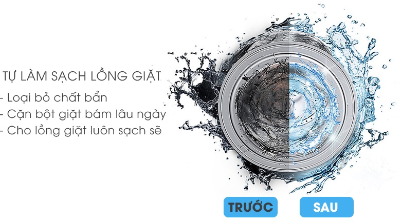 Nhờ khả năng tự động vệ sinh, chiếc máy giặt Samsung sẽ loại bỏ chỉ thừa, sơ vải, bụi bẩn, nấm mốc, vi khuẩn, mầm bệnh,... bám trên lồng giặt, giúp cho lồng giặt luôn được sạch sẽ và không bám mùi hôi khó chịu cho lần giặt tiếp theo.
