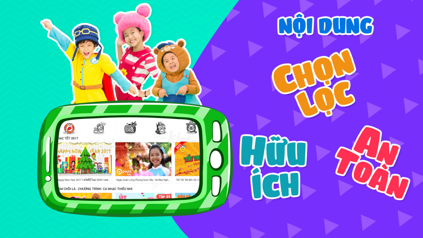 POPS Kids TV là ứng dụng xem video đầu tiên được thiết kế riêng dành cho các bé Việt Nam với tất cả video được sản xuất và Việt hóa từ những nhà cung cấp nội dung số cho trẻ em hàng đầu trong và ngoài nước, đảm bảo nội dung hữu ích và hoàn toàn phù hợp với trẻ.
