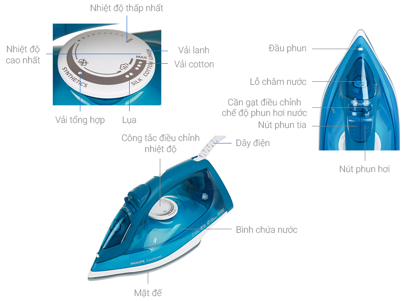Ủi khô, phun hơi, phun tia, phun hơi tăng cường tiện dụng, hiệu quả cao với công suất 1700 - 2000 W.