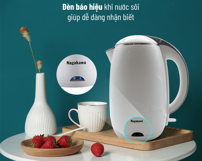 Ấm siêu tốc Nagakawa NAG0314 có đèn báo tự động bật tắt, báo từ khi bắt đầu cho đến lúc kết thúc quá trình đun sôi nước, giúp bạn dễ dàng nhận biết được nước đã sôi hay chưa mà không cần mở nắp.