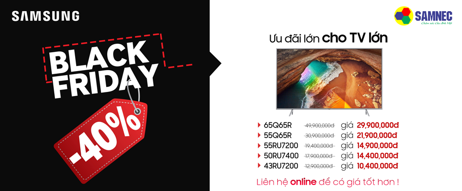 Hưởng ứng ngày Black Friday trong năm 2019, Điện máy Samnec giảm giá lên đến 40% các sản phẩm Smart Tivi Samsung
