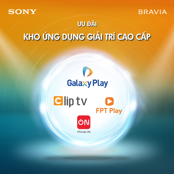- Khách hàng mua tivi Sony trong tháng 6 còn được tặng thêm gói quà tặng hấp dẫn: hỗ trợ tiền điện cùng thời gian bảo hành lên đến 3 năm, Ưu đãi 30% cho loa thanh, Kho ứng dụng giải trí đa dạng, đẳng cấp từ Clip TV, Galaxy Play, FPT Play, VTVCap On.( tùy từng model )