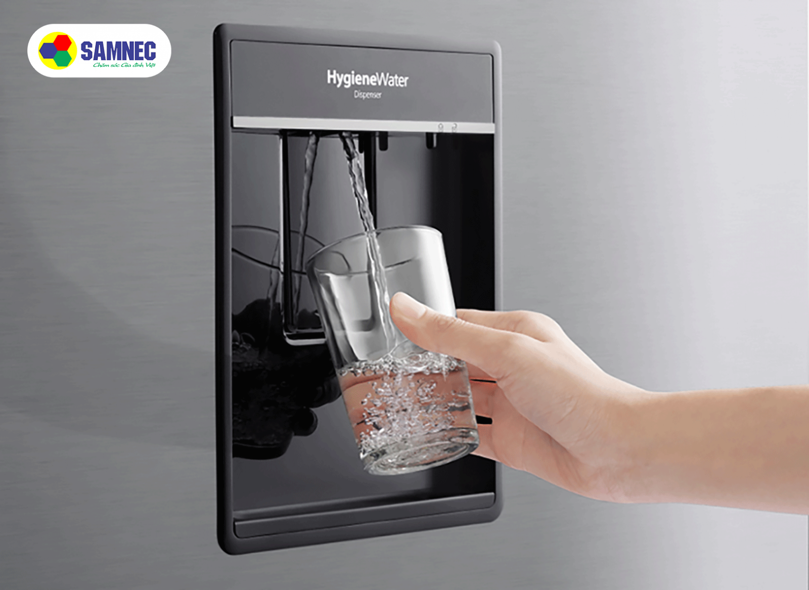 Một số dòng của tủ lạnh Panasonic có thiết kế khay lấy nước bên ngoài tủ, chỉ với thao tác đơn giản bạn đã có ngay 1 cốc nước mát lạnh. Nước được duy trì độ tinh khiết, sạch khuẩn, nhờ bình chứa nước được đúc bằng nhựa kháng khuẩn không chứa BPA, đồng thời giúp khử mùi với bộ lọc carbon ở bên trong.