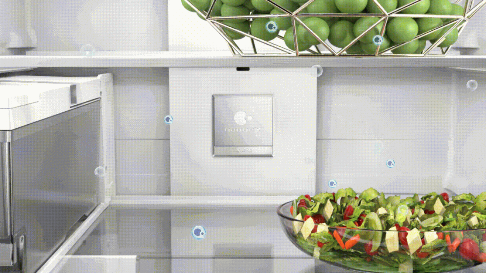 Khử mùi, kháng khuẩn Nanoe-X khi hoạt động sẽ tạo ra các gốc hydroxyl được bao bọc trong các hạt nước có kích thước nano siêu nhỏ và được lan tỏa khắp ngóc ngách nhờ luồng gió trong tủ, qua đó giúp tiêu diệt 99,99% vi khuẩn có trong tủ, đồng thời khử mùi và giảm dư lượng nước trừ sâu nhờ vậy mang đến sự an toàn cho người dùng.