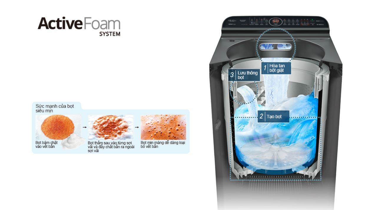 Đánh tan bột giặt hoàn hảo nhờ Turbo Mixer & Active Foam