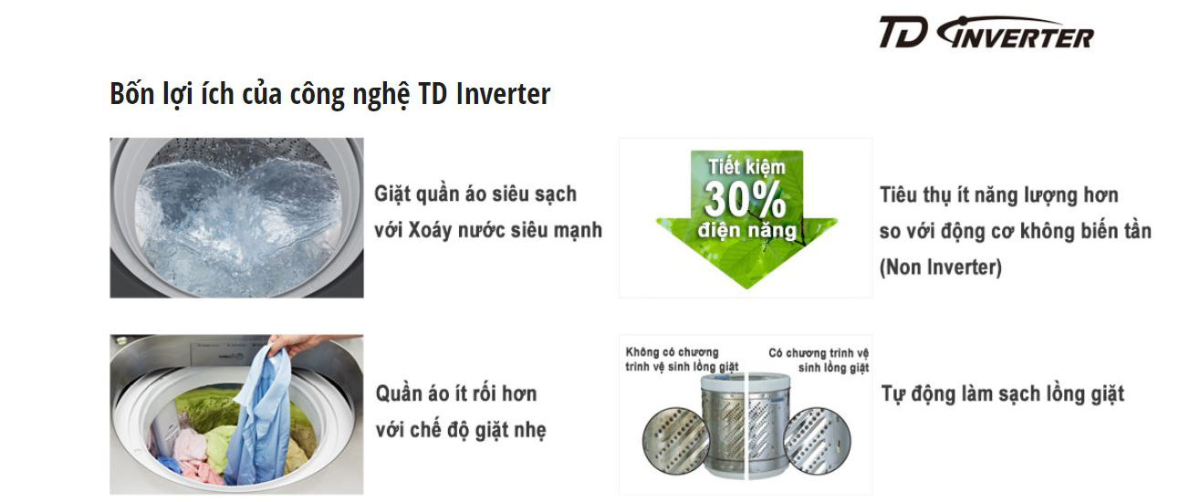 Mức tiêu thụ điện của động cơ TD Inverter tiết kiệm tới 30% so với động cơ Inverter thông thường, giúp người dùng không còn lo lắng về chi phí tiền điện.