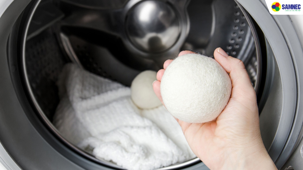 Bóng sấy (dryer balls) giúp giảm ma sát giữa các sợi vải và hỗ trợ quần áo khô đều hơn. Nếu không có bóng sấy, bạn có thể đặt thêm một chiếc khăn khô vào máy để tăng hiệu quả làm khô và bảo vệ cấu trúc vải.