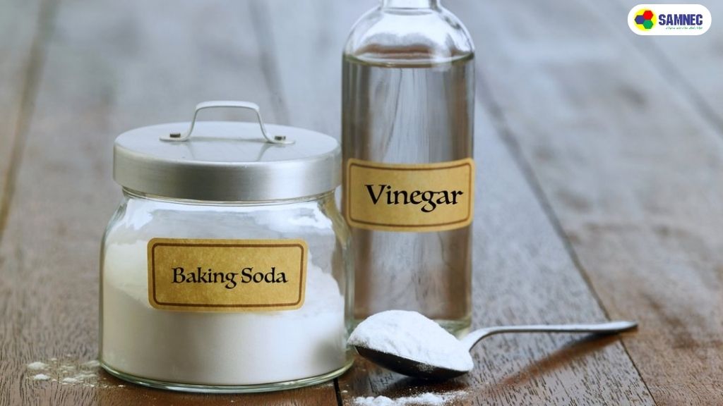 Bước 1: Chuẩn bị giấm, baking soda hoặc nước javen, khăn bông sạch và nước ấm.