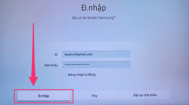 Đăng nhập tài khoản Samsung Account trên tivi để tải ứng dụng