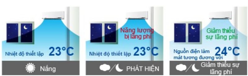 2. Tính năng Cảm biến ánh sáng mặt trời: tính năng giúp chỉnh nhiệt độ theo cường độ ánh sáng mặt trời.