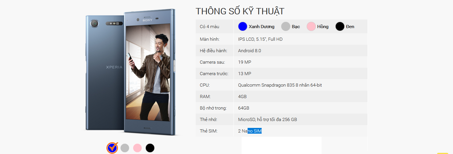 Xperia XZ1 với 4 tông màu (đen, bạc, xanh, hồng)