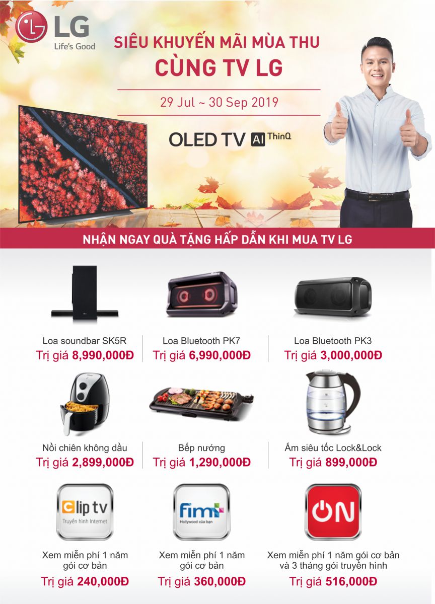 Quý khách hàng mua sản phẩm Tivi LG từ 32 inch trờ lên sẽ được nhận nhiều quà tặng hấp dẫn: