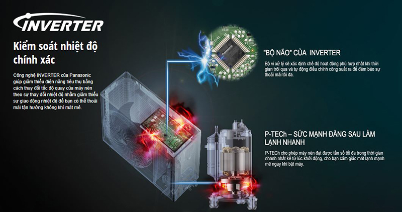 Trang bị công nghệ Inverter giúp động cơ vận hành êm ái và bền bỉ, cho tuổi thọ sử dụng dài lâu. Hơn nữa, công nghệ Inverter còn giúp điều hòa hoạt động tiết kiệm hơn với năng lượng tiêu thụ thấp. Do đó, khi lắp điều hòa Panasonic cho gia đình bạn không còn phải lo lắng với hóa đơn tiền điện vào cuối tháng nữa.