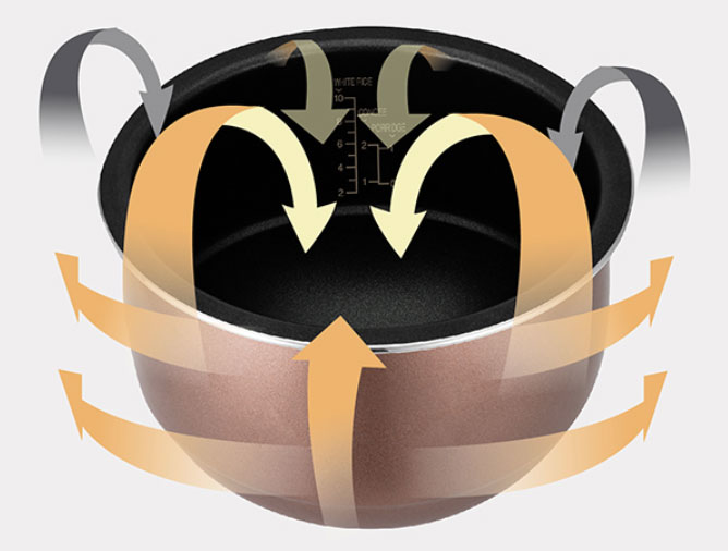 Cuckoo tự hào với công nghệ gia nhiệt 3D giúp hạt cơm và thức ăn chín đều, duy trì hơi ấm đồng đều trong thời gian dài sau khi kết thúc quá trình nấu.
