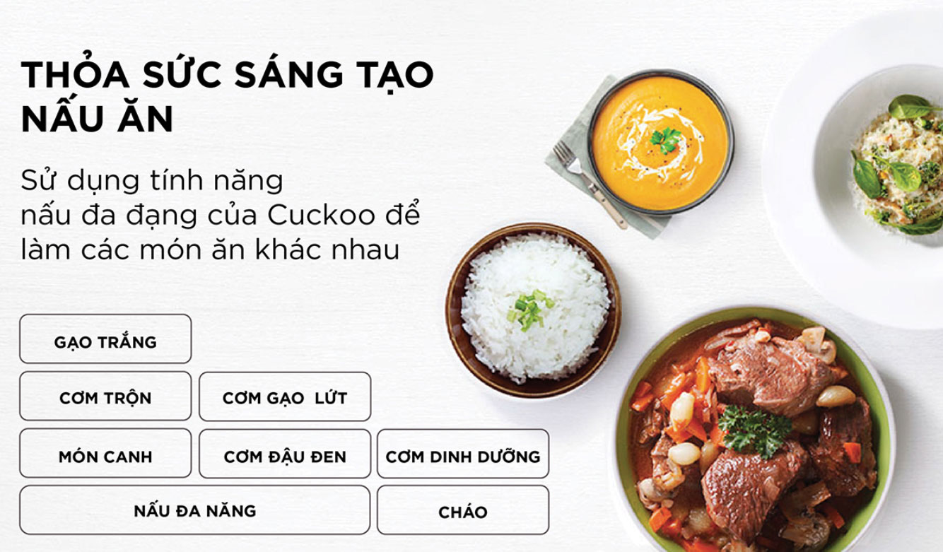 Sử dụng chức năng nấu đa dạng để nấu các món ăn khác nhau
