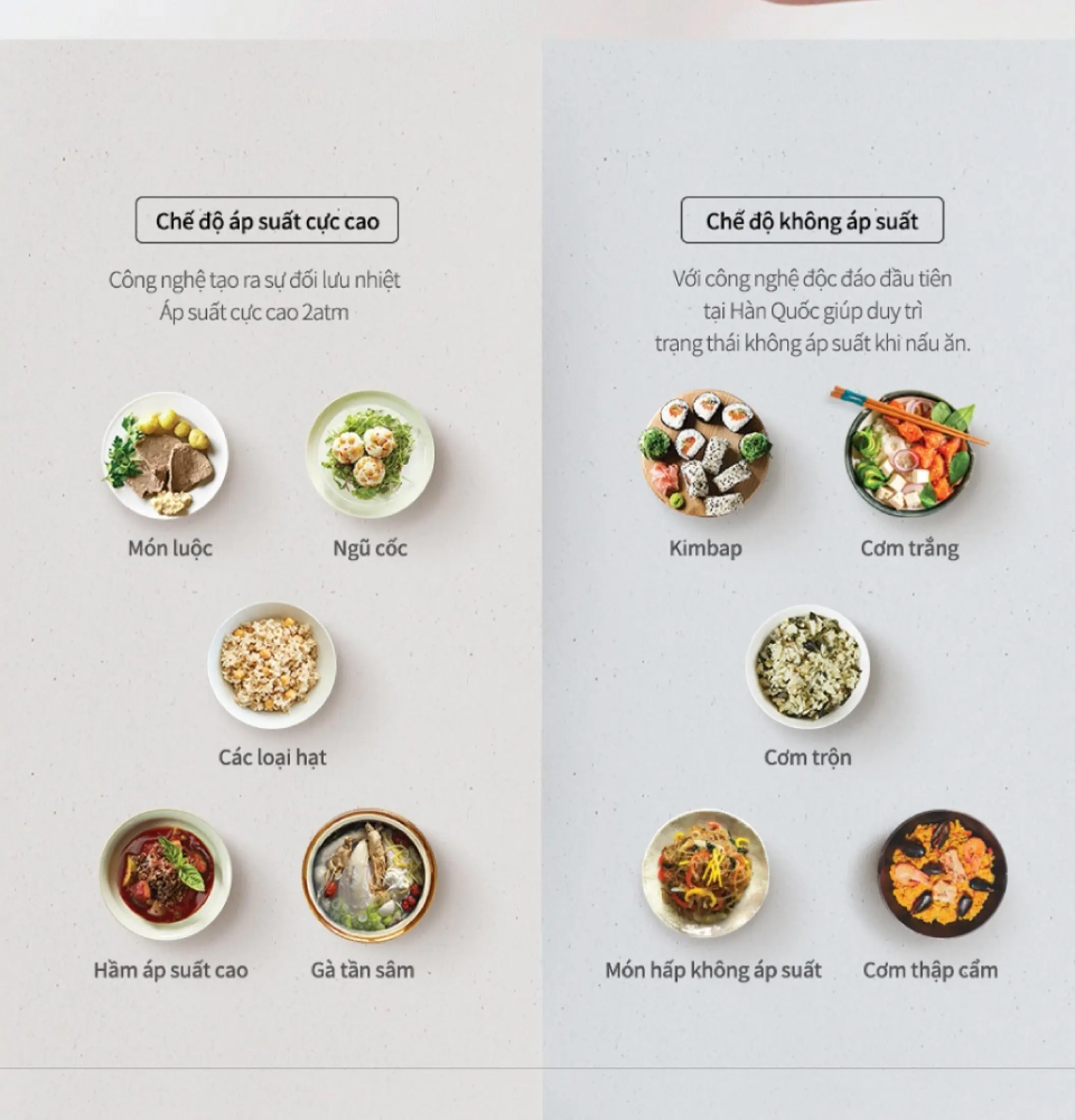Đa năng: Chế độ nấu áp suất cực cao 2atm, Chế độ nấu không áp suất