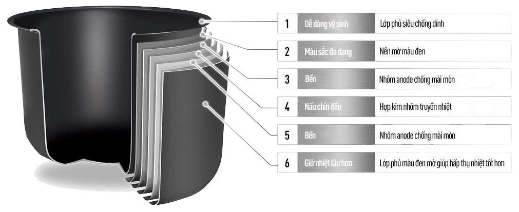 Lớp phủ bên trong: Lớp phủ chống dính màu đen