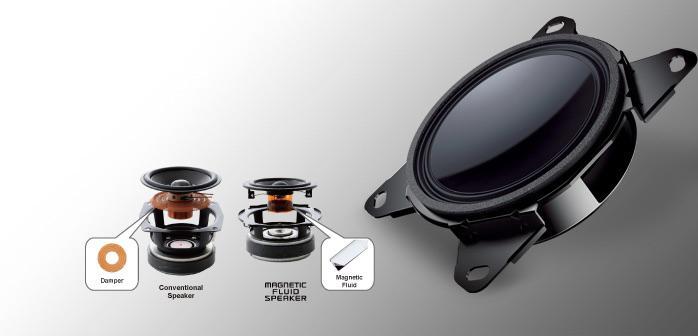 Loa Magnetic Fluid là công nghệ mới và cao cấp hơn so với Loa Long Duct tạo ra âm thanh mạnh mẽ, âm bass phong phú, hiệu quả âm thanh hoàn hảo hơn với những âm thanh trung thực đạt chất lượng cao, đồng thời cho phép thiết kế của tivi mỏng hơn, ít tốn điện hơn.
