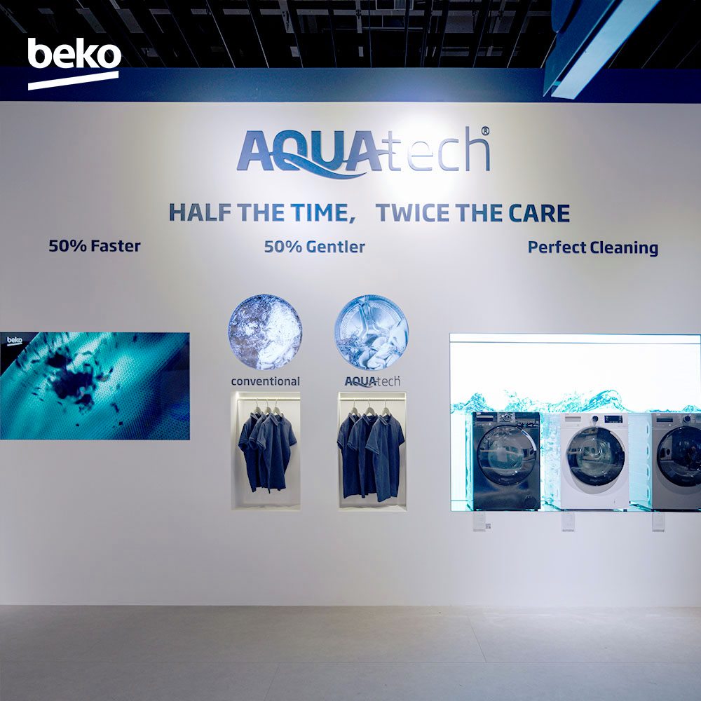 Beko là dòng thương hiệu máy giặt nổi tiếng hàng đầu và phát triển nhanh nhất đến từ Châu Âu. Nhằm mang đến những giải pháp giặt giũ thông minh cho người tiêu dùng, các dòng máy giặt Beko đã được trang bị rất nhiều công nghệ hiện đại, trong đó có công nghệ AquaTechTM mang đến hiệu quả giặt tẩy vượt trội, giúp tiết kiệm thời gian đáng kể.
