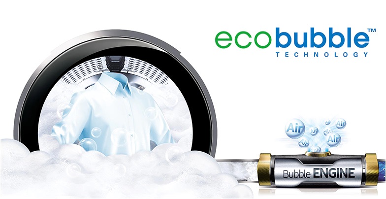 Công nghệ giặt bong bóng Eco Bubble mang lại hiệu quả giặt giũ tối đa bằng cách đánh tan bột giặt thành bong bóng khí trước khi bắt đầu quá trình giặt. Những bong bóng khí này có khả năng thấm thấu vào quần áo nhanh hơn gấp 40 lần so với thông thường.