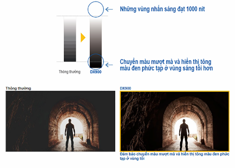 Với 4K Hexa Chroma Drive Pro, cong nghệ này giúp cho độ sáng tivi đạt lên tới 1000 nit trên diện rộng, rộng hơn nhiều so với các TV hỗ trợ HDR hiện có trên thị trường, cho phép đem lại hình ảnh chân thực vượt trội, ngay cả với những nội dung không có HDR.