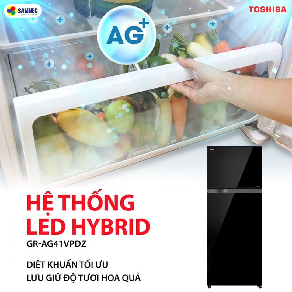 Công nghệ Duo Hybrid là sự kết hợp của công nghệ Led Hybrid (ở ngăn mát) và Ag + Bio (ở ngăn đông), có tác dụng kháng khuẩn, khử mùi cho cả ngăn đông và ngăn mát của tủ lạnh Toshiba, giúp giữ nguyên độ tươi ngon và hương vị cho thực phẩm trong thời gian dài và trả lại bầu không khí trong sạch trong khoang tủ lạnh.