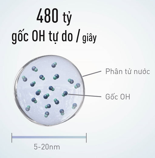 Hiệu quả của nanoe™ trên vi khuẩn, virus và mùi tùy thuộc vào số lượng gốc OH được tạo ra. Trung bình số lượng gốc OH được tạo ra mỗi giây khoảng 480 tỷ.