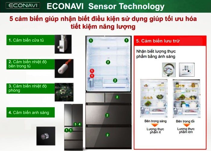Với mong muốn tiết kiệm năng lượng của các thiết bị điện lạnh, công nghệ ECONAVI đã được tạo ra, trở thành công nghệ tiên phong trong lĩnh vực tiết kiệm năng lượng trên thế giới. Nhờ vào cảm biến thông minh, tính năng này có thể nhận biết sự thay đổi trong thói quen sinh hoạt, từ đó tủ lạnh tự động điều chỉnh để tiết kiệm năng lượng tiêu thụ.