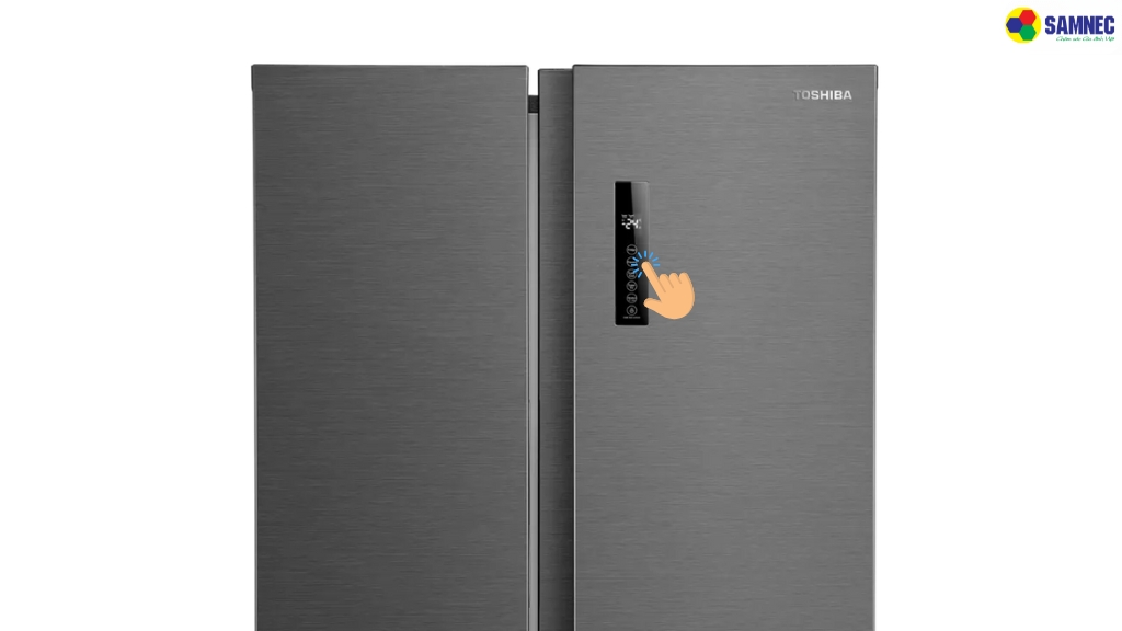 - Bảng điều khiển cảm ứng bên ngoài cửa tủ lạnh Toshiba giúp bạn dễ thao tác mà không cần mở tủ, giúp tiết kiệm điện.