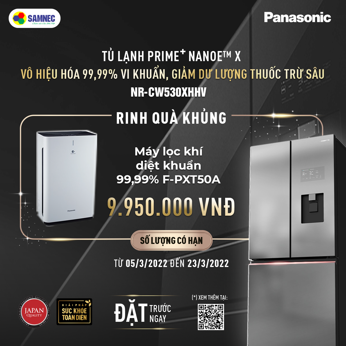 - Quý khách hàng đặt mua 01 Tủ lạnh Panasonic NR-CW530XHHV sẽ được tặng 01 Máy lọc không khí Panasonic F-PXT50A trị giá 9.950.000 VNĐ.