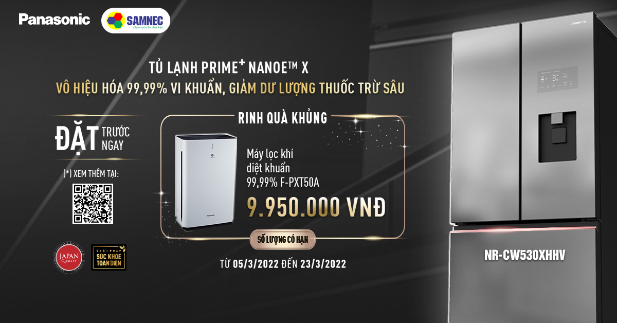 Samnec Điện Máy gửi đến quý khách hàng chương trình khuyến mãi hấp dẫn khi đặt mua trước tủ lạnh Panasonic Prime+ Nanoe™ X thế hệ mới.