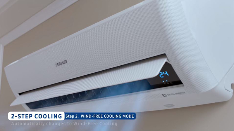 Chế độ làm mát trong 2 bước làm mát không khí nhanh chóng ở chế độ Làm Mát Nhanh, sau đó tự động thay đổi sang chế độ Wind-Free duy trì nhiệt độ. Vì vậy bạn sẽ tận hưởng luồng không khí thoải mái, không bị lạnh và không cần đổi chế độ thường xuyên.
