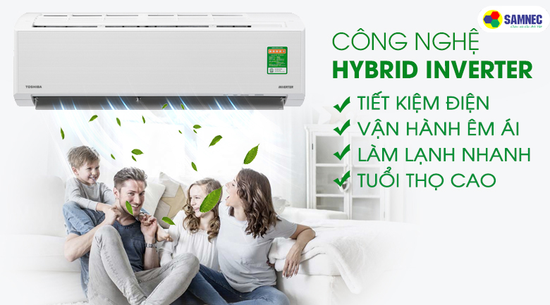 Được trang bị công nghệ Hybrid Inverter giúp điện năng tiêu thụ tiết kiệm đến 50%. Ngoài ra, động cơ Hybrid Inverter trang bị 2 module: 1 module giúp tiết kiệm điện, 1 duy trì hiệu suất làm lạnh nên máy vẫn đạt được hiệu quả làm lạnh tuyệt vời trong khi lượng tiêu hao điện năng là không đáng kể. Thêm vào đó, với bộ máy nén xoay chuyển động đều, hạn chế tiếng ồn không mong muốn sẽ mang đến không gian thư giãn yên tĩnh cho người dùng.