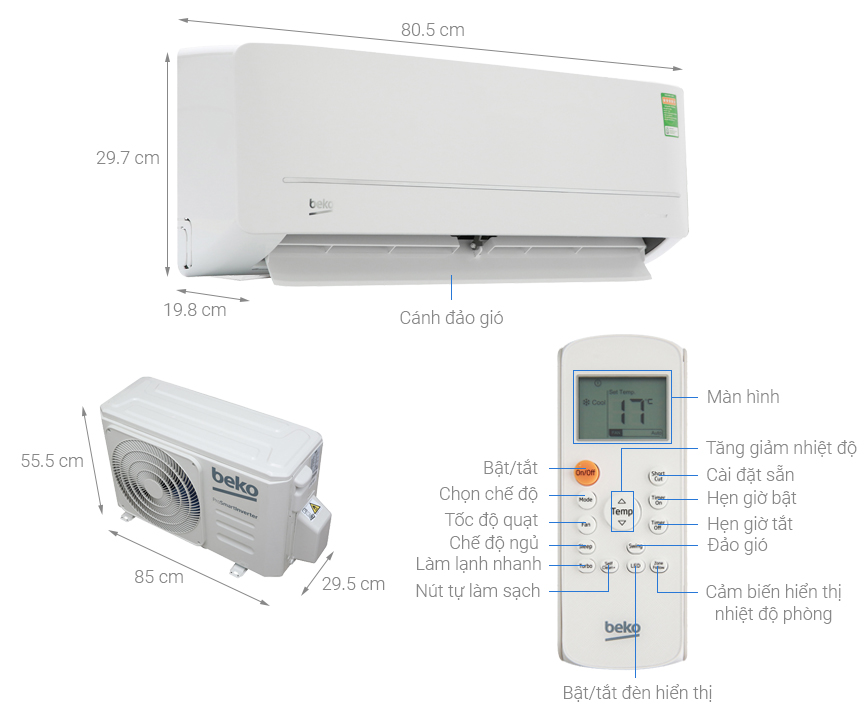 Nếu có nhu cầu lắp đặt máy lạnh cho phòng có diện tích 15 - 20 m2, bạn có thể cân nhắc, lựa chọn chiếc máy lạnh Beko 1.5 HP này.