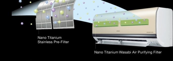Máy lạnh được trang bị lưới lọc Nano Titanium Wasabi, một sự kết hợp độc đáo giữa công nghệ kháng khuẩn Nano Titanium và tính khử trùng cực mạnh của Wasabi. Nhờ đó máy lạnh sẽ giúp tiêu diệt nấm mốc, vi khuẩn và ngăn chặn những mùi hôi khó chịu trong không khí. Không khí trong phòng luôn trong lành, tinh khiết, bảo vệ người dùng khỏi những bệnh về đường hô hấp như dị ứng, hen suyễn…