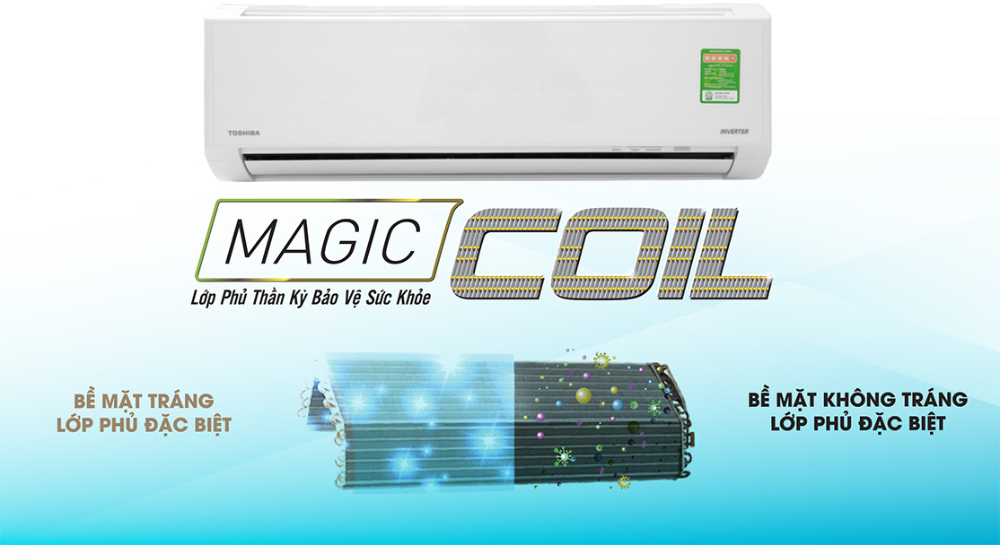 Công nghệ độc quyền Magic Coil giúp tiết kiệm điện năng tối ưu, nâng cao khả năng làm lạnh nhanh. Đồng thời, công nghệ này còn tối ưu hóa tính năng lọc, nâng cao chất lượng không khí trong phòng. Lớp phủ AQUA trên lá nhôm dàn lạnh và dàn nóng sẽ ngăn bụi bẩn bám vào, từ đó tăng cường tuổi thọ máy, giảm chi phí bảo trì và số lần vệ sinh máy.