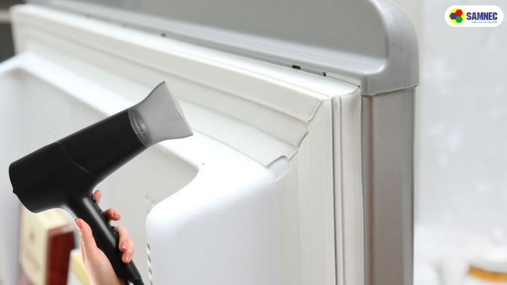 - Dùng máy sấy tóc: Sử dụng máy sấy tóc ở nhiệt độ thấp và di chuyển theo đường viền của gioăng cao su để khắc phục vùng đang bị hở.