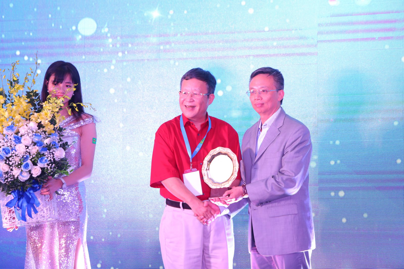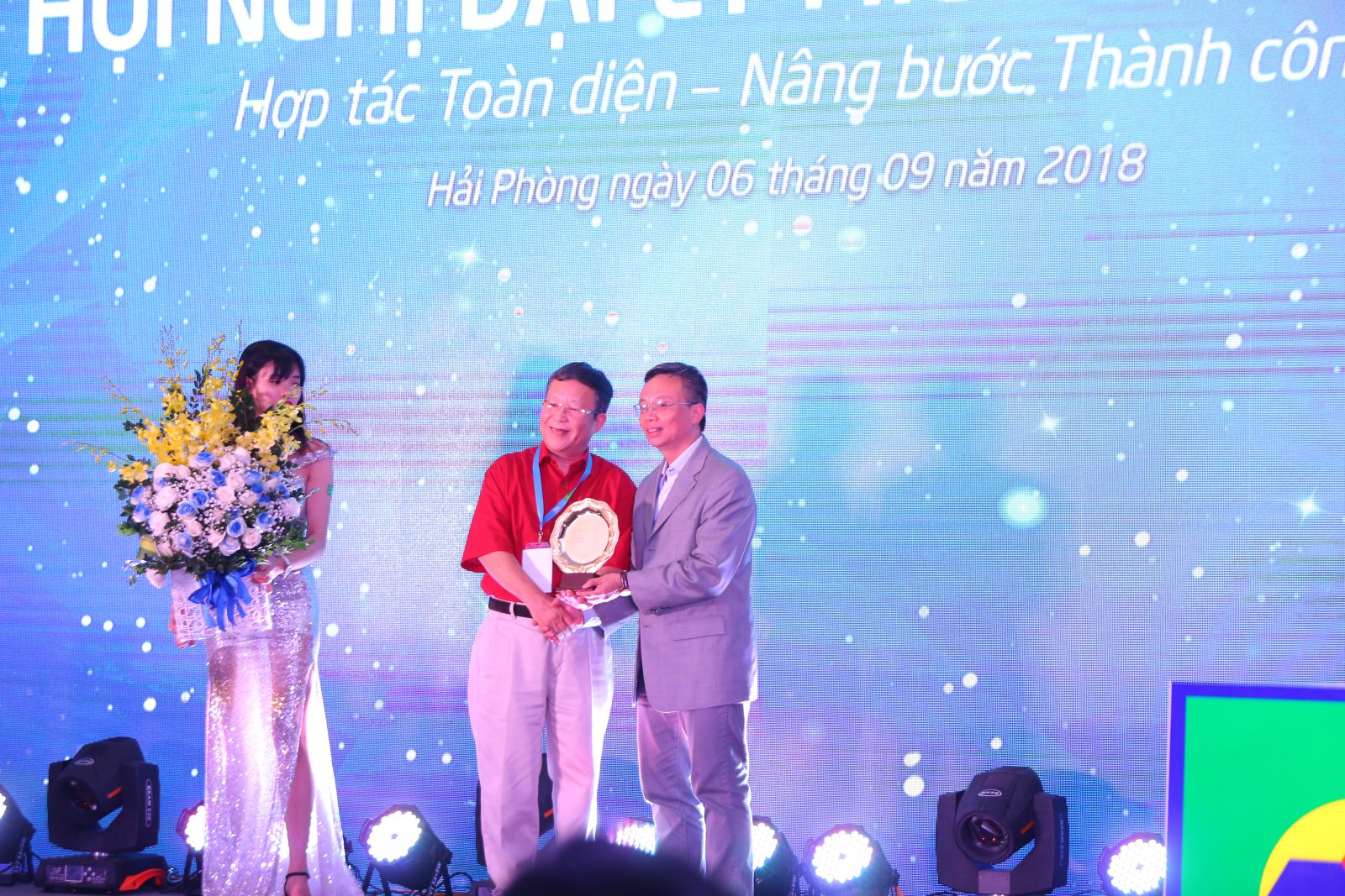 Ông Hồ Xuân Lộc - Tổng giám đốc Vietbeko Trao hoa và Trophy vinh danh & cám ơn nhà phân phối Samnec