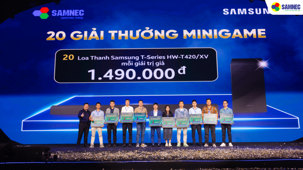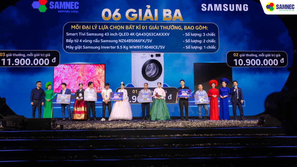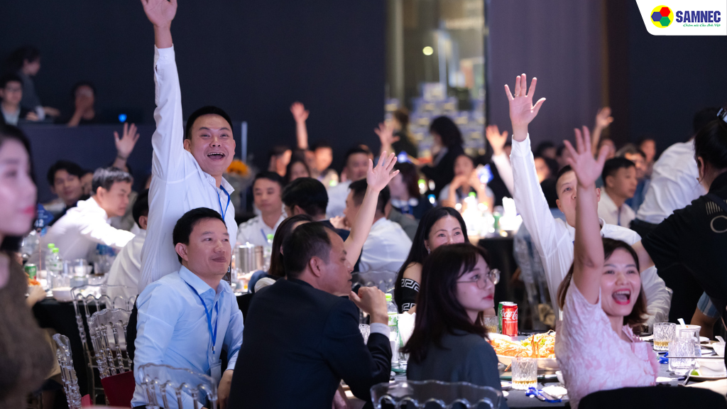 Hội nghị Khách hàng Samnec - Samsung không chỉ là một sự kiện kinh doanh mà còn là một buổi gặp gỡ thân mật, nơi các đối tác có cơ hội giao lưu, chia sẻ và thắt chặt mối quan hệ. Chương trình còn có những tiết mục văn nghệ đặc sắc, chương trình minigame và phần bốc thăm trúng thưởng hấp dẫn, mang đến những khoảnh khắc đáng nhớ cho tất cả khách tham dự.