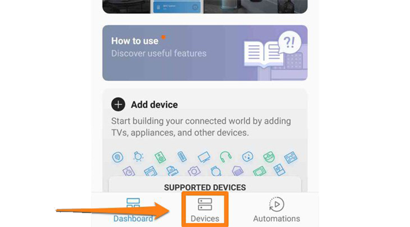 Bước 1: Ở giao diện chính của ứng dụng, bạn chọn vào mục "Devices".