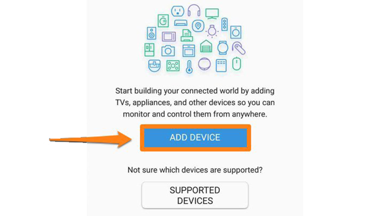 Bước 2: Bạn chọn vào mục "ADD DEVICE" để ứng dụng bắt đầu dò tìm tín hiệu của tivi.