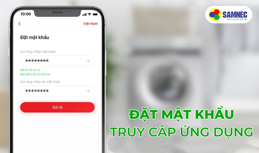 Sau khi thiết lập mã xác minh thì giao diện đặt mật khẩu ứng dụng hiện ra bạn chọn “Mật khẩu của bạn”. Mật khẩu phải từ 8 đến 20 ký tự, bao gồm cả chữ số và chữ cái để đảm bảo an toàn.
