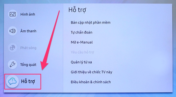 Bước 3: Bạn di chuyển xuống mục “Hỗ trợ”.