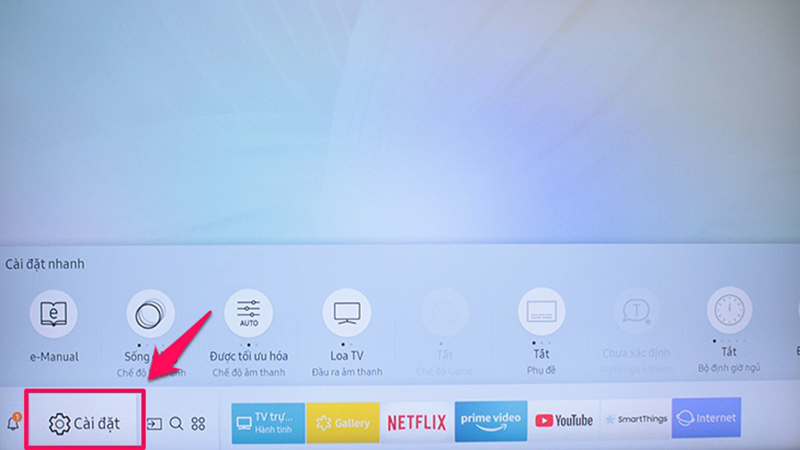 Bước 1: Nhấn nút “hình ngôi nhà” trên remote để về giao diện màn hình chính tivi Samsung.