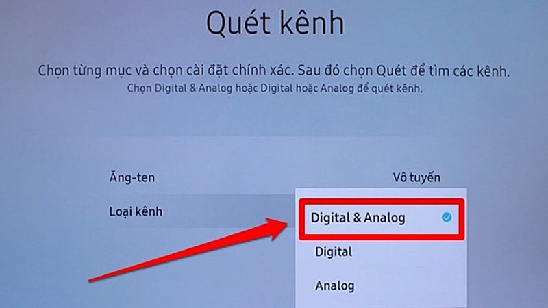 Bước 9: Bạn chọn "Quét". Tivi sẽ tiến hành quét kênh tự động.
